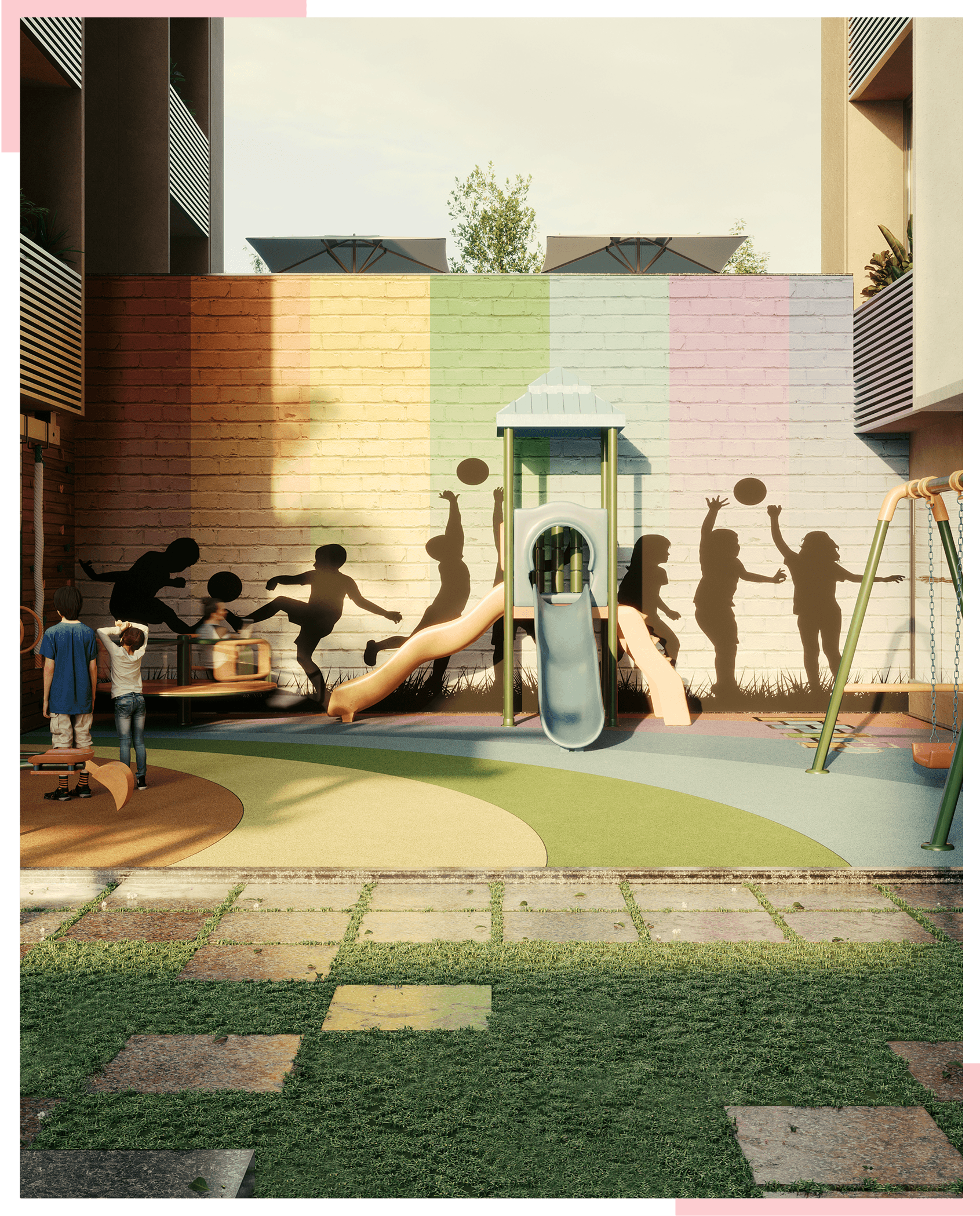 Numerous elements combine to create an ambience. At the core, we have “colors” that help create a better environment. We have incorporated the feeling of “color” into the ambience by incorporating it into the architectural designs and artistic conceptualization.